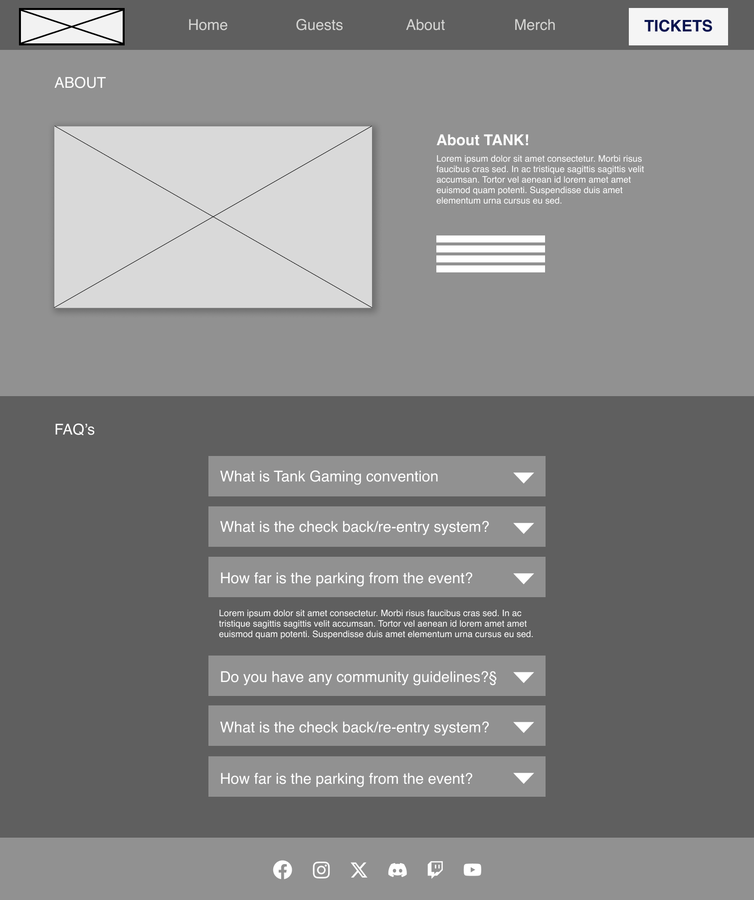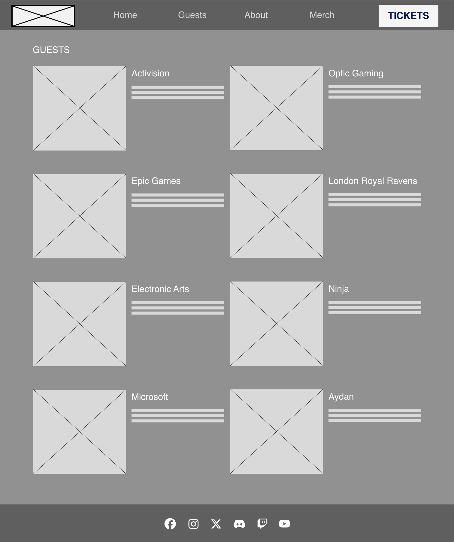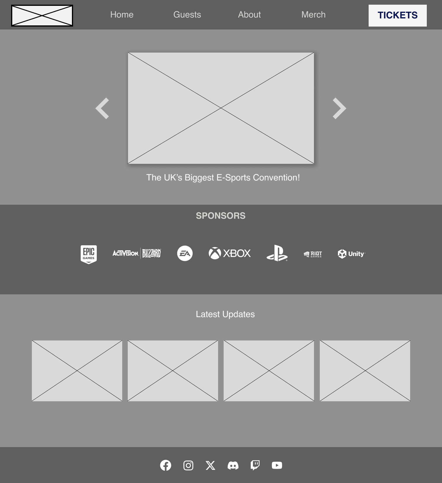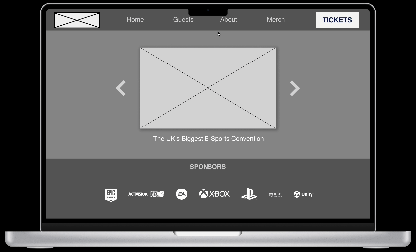 Responsive layouts play a vital part in modern design and user interface due to amount of devices and screen sizes available in today’s world, it plays a large part in breaking down barriers on who can view the website. The website needs to be able to work across devices such as computer monitors, tablets and phones being the main devices that as website will be viewed on. There are several ways that you can tailor a website to change elements based on screen size, which in turn creates an improved experience so that the user does not struggle to navigate the site. A main component that the gaming and e-sport convention will put into action to improve how it responds to different screens, is a changing header menu; as the screen size gets smaller it will be comprised of a burger drop-down menu instead of the horizontal menu bar seen in the mid-fidelity prototypes(see above), this will result in a cleaner, uncluttered layout. responsive text boxes also play a vital role in how a website acts in different sizes, being able to change the size of the screen without losing text or needing a horizontal scroll. The image below shows how a potential responsive webpage from the mid-fidelity would work and how the same content is incorporated into a mobile-size screen.
