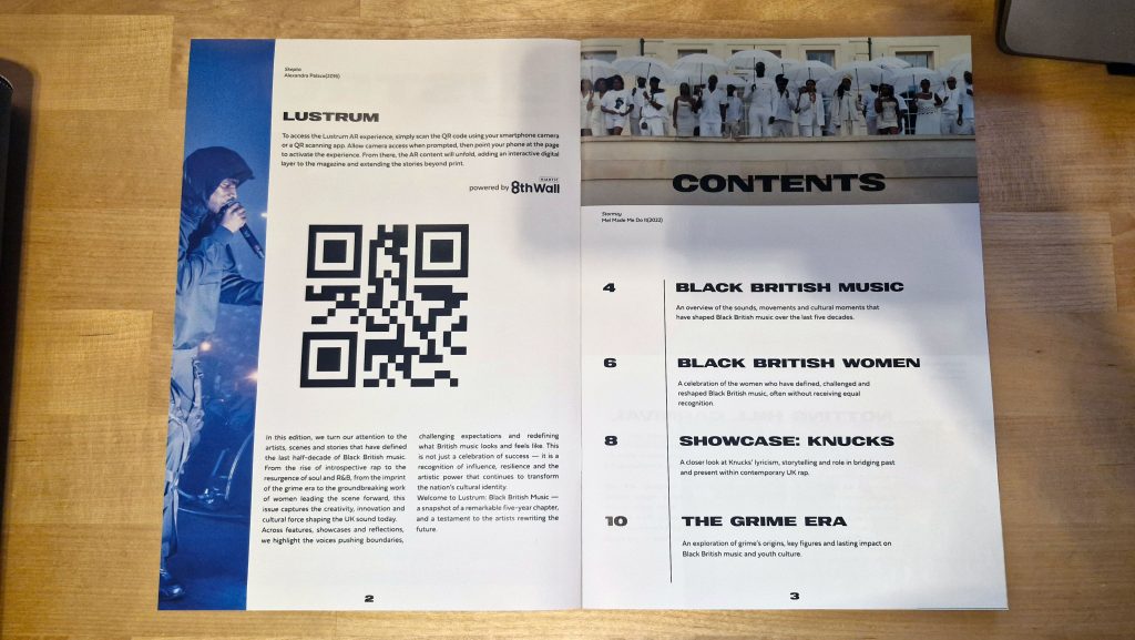 With all static assets prepared, I was able to assemble a 12-page, five-column magazine, featuring concise and engaging articles, relevant imagery, and a clear contents page. Special care was taken to include explicit directions on how to enter the AR journey, ensuring that the transition from print to digital was intuitive and user-friendly. Once the magazine layout was finalised, it was prepared for print, with the 8th Wall project file already configured to link the embedded QR code to the correct AR experience. This careful preparation ensured a streamlined, cohesive experience that integrated both physical and digital interactions from the moment the reader picked up the magazine, once again reinforcing the goal of the proposal – to combine traditional practices with emerging technologies.