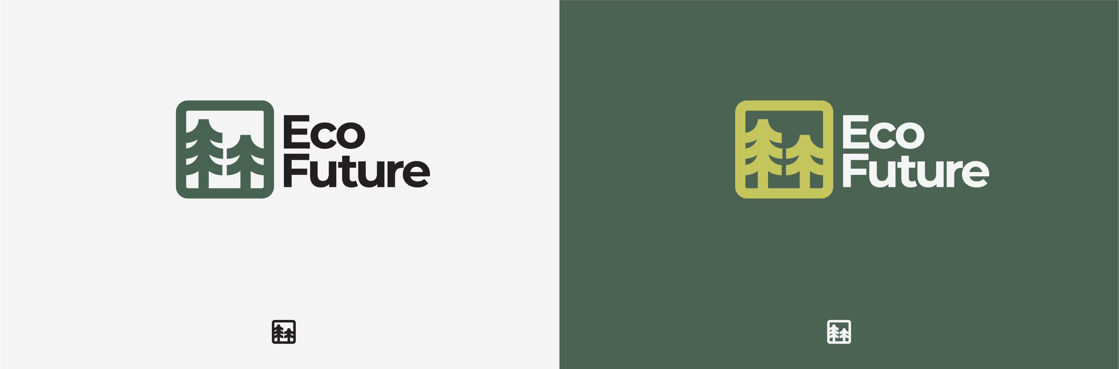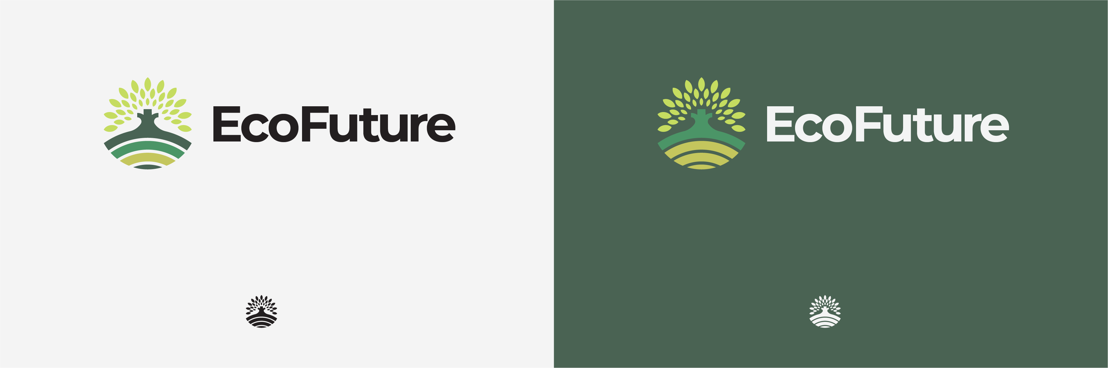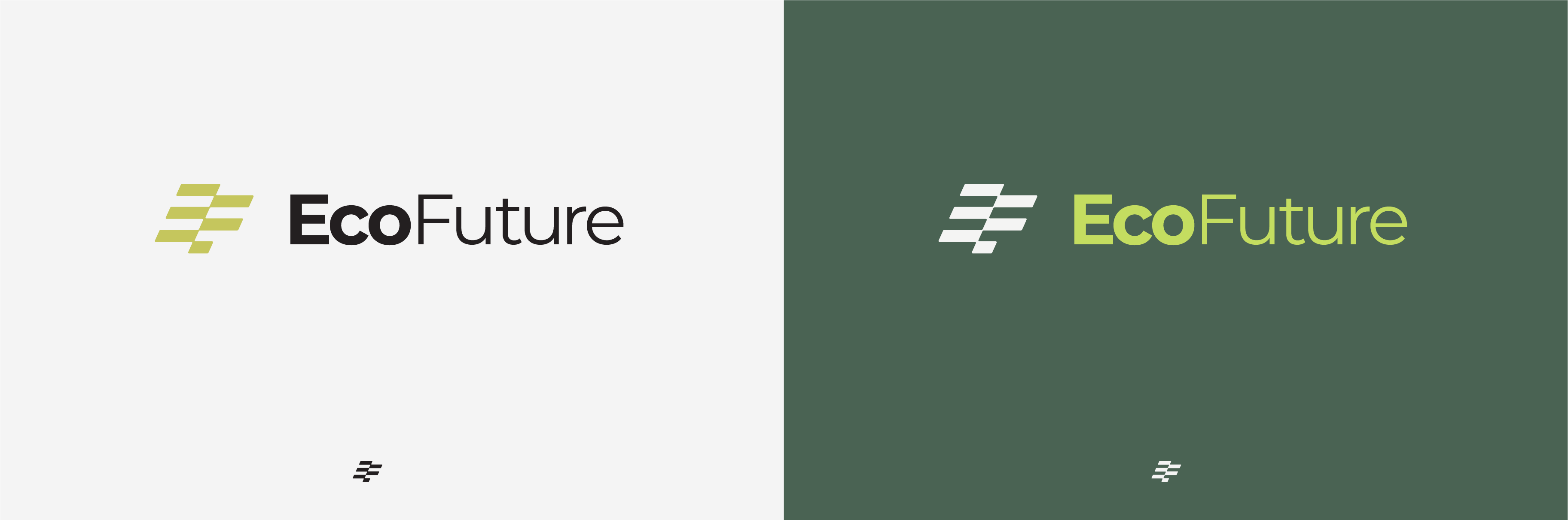 tThe first logo was a conceptual design where I have tried to combine different ideas. A unique logo mark inspired by solar panels and how I could design them in a way that also worked as an acronym of EcoFuture, with the subtle ‘EF’ mark created out of the angled panels. The mark is futuristic and geometric, whilst also depicting a key source of energy; this being paired with the Montserrat sans serif typeface as it is organic, bold and modern, following a similar theme depicted in the style scape. The choice to have the accomponying type in a mixture of weights is used to split the brand name down the middle so that ‘Eco’ stood out more prominently. One of the reasons this logo was not selected was due to the sharpness and straight lines of the logo, creating a very rigid looking logo which did not suit the brand style but instead looks like it would be found in the automative industry.