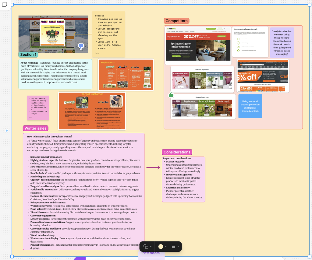 One of the key things about the project is that Kennings and eDecks/eRoofs are two separate companies, although they are interlinked and the line between them is fine; it is crucial to acknowledge the difference to ensure that the correct problem is being tackled. Kennings is the parent company and focuses on building supplies, working directly with other businesses at trade prices, and is based solely in the local area; whereas eDecks focuses directly on a business-to-consumer sales model, with a larger product range, and is predominantly online, providing products nationwide. Identifying these differences allows a deeper look into the competitors and how they position themselves strategically and visually, especially during these winter periods.