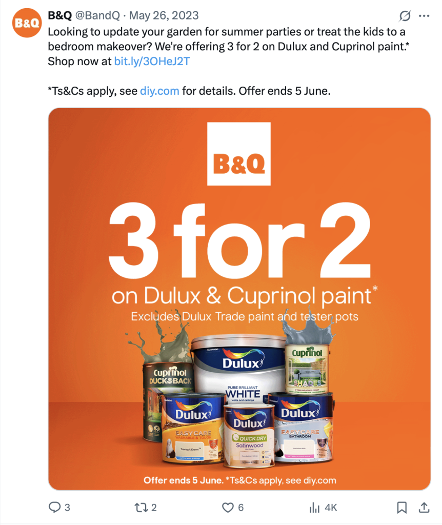 I further explored competitors and brands within a similar industry, such as B&Q, Screwfix, Wickes and Homebase to look at how their social plays an impact on the brand perception, which may also in turn boost sales and revenue.