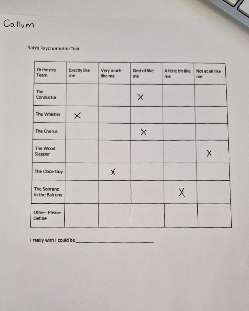 Looking at the early psychometric testing we did for this assignment and how it has had an impact on the role I played within my group, as well as self-reflection on the project, has led me to determine where I would place myself. The early psychometric testing, I was unsure about how I would portray a conductor role, but as the project timeline went on, I found myself taking a more creative director role, having the idea to document the proposal process and stand as the point of contact with both marketing groups, and making certain design decisions and steering the direction of the project. I found that I also resonated highly with the whistler in the orchestra, the way that they stand centre stage and have a large presence, similar to the role a lead designer would play.