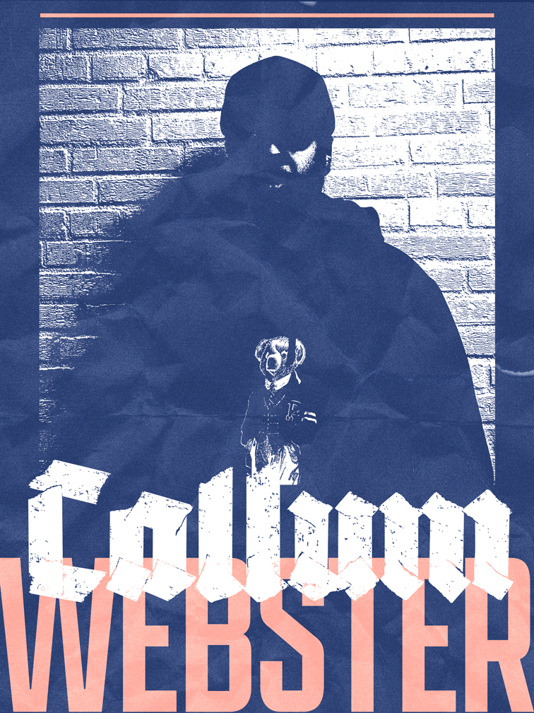 The promotional poster on the left was the first one I created and solely showcases my forename, in a gritty blackletter type, and my surname in a bold sans-serif; along with the image of myself growing brighter and brighter. After creating my first poster, I couldn’t backtrack into a still poster so I further one upped myself. I was able to use my illustrated self portrait along with the reference photo I used to make it to create a series of photoshop and illustrator self portraits of myself going through different changes. I also took the type ‘Webster’ in a mixture of typefaces from my photoshop self portrait and expanded on the idea of each letter being its own diverse entity, I expanded on this but creating a series of word marks that my poster used to match the different changes of my self-portrait. I have also added some information around the margins of the poster which could help a first time viewer to understand what my promotional poster is about.