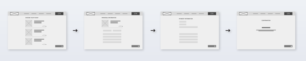 The website enforces Jacob’s Law by taking inspiration from other festival sites, which creates a sense of familiarity when the user enters the site, there are menus and layouts that they are familiar which, in turn, improves the site navigation allowing the user to find the information they are looking for. The image below depicts the steps it takes to purchase tickets once the call to action button has been clicked, it is a simple four-step process from selecting the preferred tickets through to the confirmation of the tickets, there is an element of familiarity further enforcing Jacob’s Law.