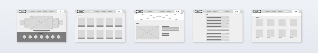 The initial designs with low-fidelity website concepts initial created for the festival were rejected due to their difficult usability. A hamburger menu icon allowed the header to be less cluttered, in turn, the drop-down menu it opened created a cluttered main layout and covered some important information. This type of drop-down menu would be more successful if the content had narrower margins so that any overlapping is avoided.