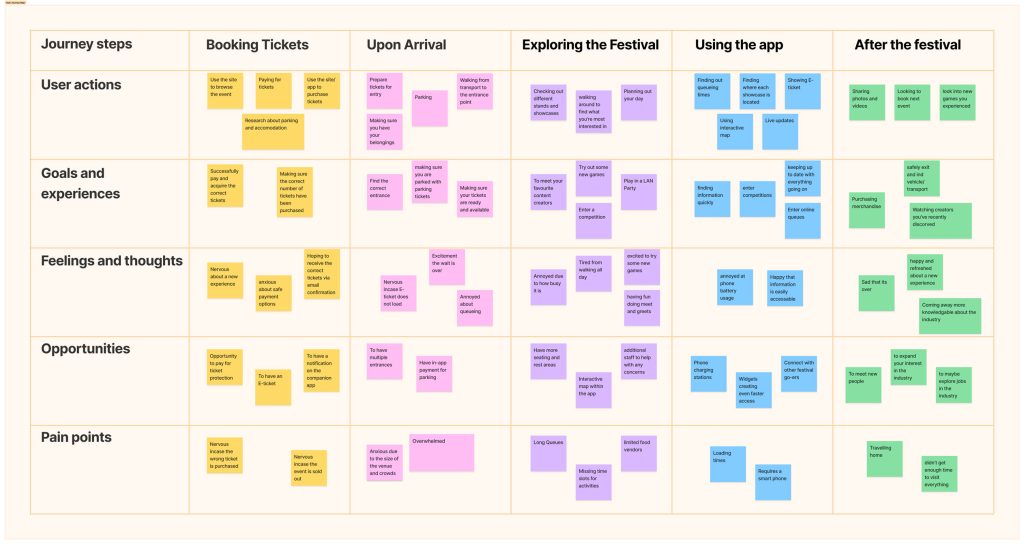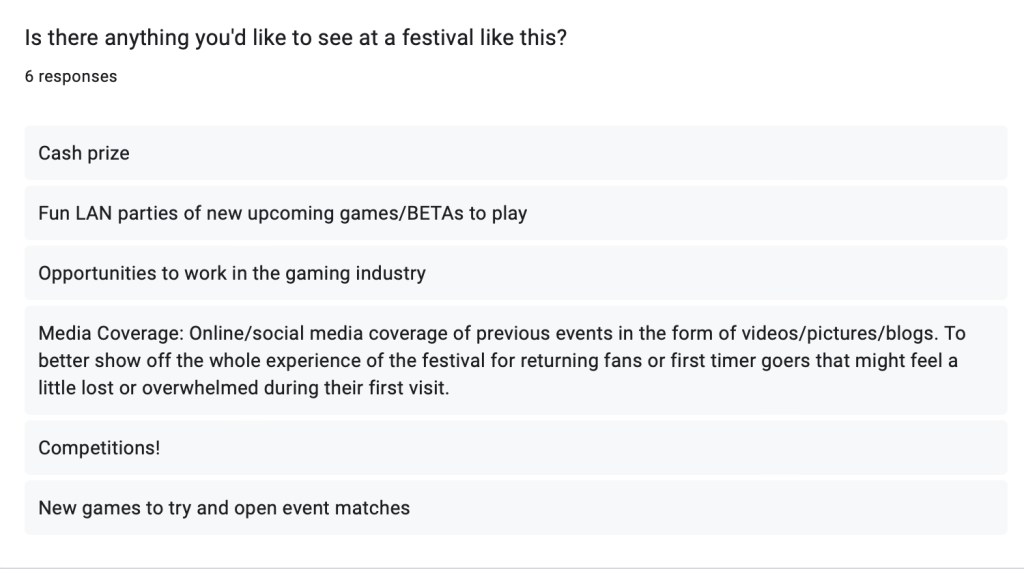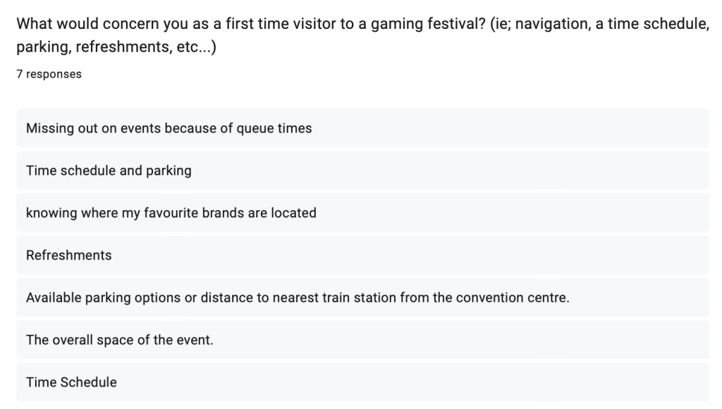 The overall goal of the festival is to allow new gamers to explore new games and experience the huge community that they are a part of. Upon inspection of the 2 main competitors’ (www.EGX.net and www.isomniagamingfestival.com) websites and apps, there is minimal information on what will be showcased at upcoming events. Each competitor also does a poor job of showing navigation to the event, this is something that should be included on the website. The companion app could differ by showing more interactive options for a live map, allowing navigation to and from specific stalls and stages within the festival.