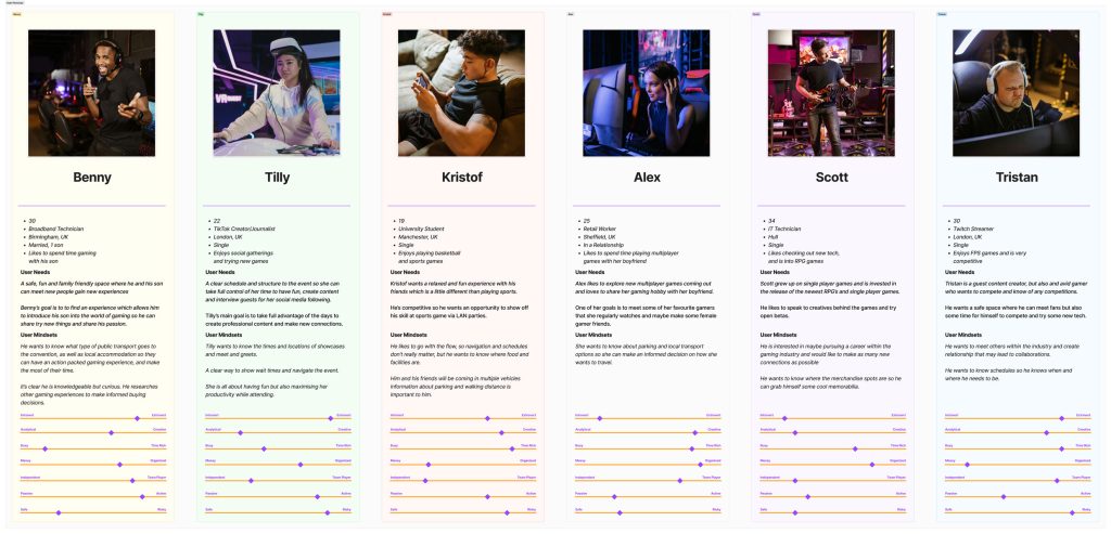 Secondary feedback forms were used to compile information on users which led to the creation of 6 personas. The personas allow the design team to put themselves in the position of the user to create an appropriate and concise design solution, by tackling any accessibility concerns and defining any concerns and assumptions surrounding the festival.